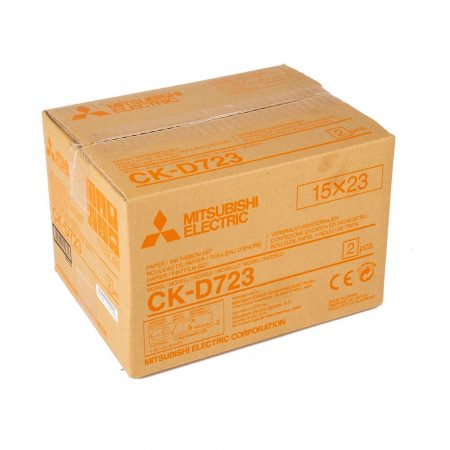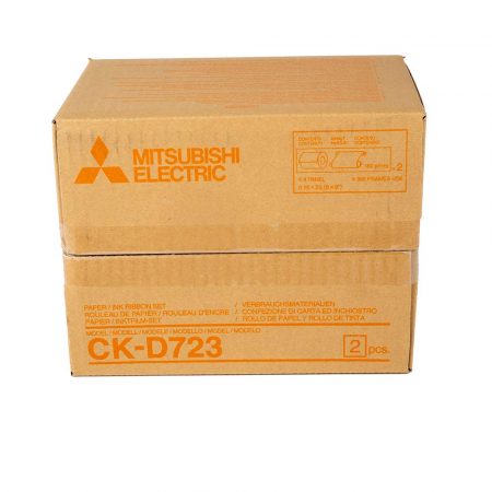 El kit Consumible 15×23 cm para impresoras fotográficas Mitsubishi compatibles es perfecto para ti. Cada rollo CK-D723 te permite hacer 180 impresiones en 15×23 cm, y cada caja contiene 2 rollos para tu impresora fotográfica.
