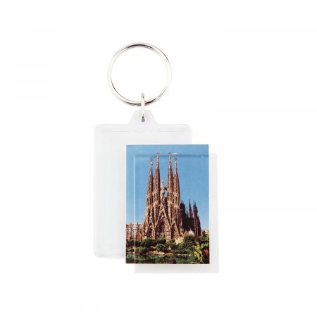Llaveros de plástico transparente con un acabado redondeado diseñado para contener fotografías de dimensiones 3,5×5 cm.