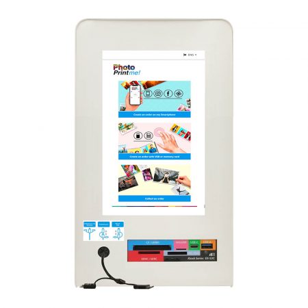 Con su pantalla integrada de 10.1 pulgadas y lector de tarjetas, este sistema de impresión fotográfica en modo kiosko te permite imprimir tus fotos en cualquier momento y lugar, ¡sin límites! Además, con su servicio 24 horas, puedes imprimir tus recuerdos favoritos en cualquier momento del día.